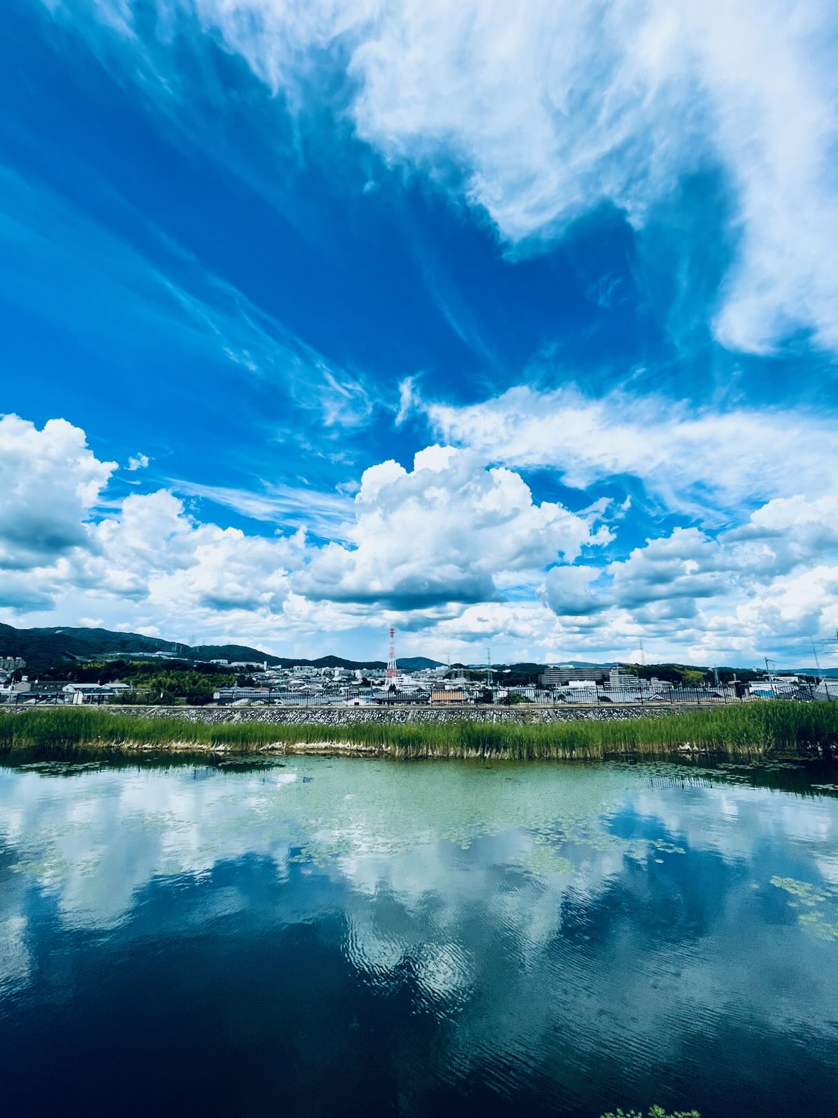 Clouds Over Minoo. There is a pond nearby where I often stop to catch a glimpse of the hills north of Minoo. Depending on the kind of weather that is moving into the Kyoto area from the Sea of Japan, there are often beautiful cloudscapes over the hills. This day was no exception.