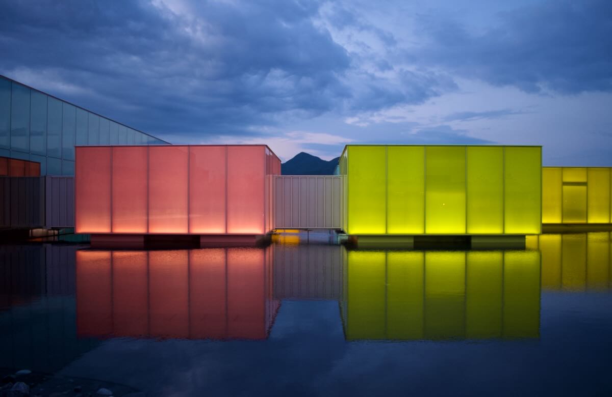 Art Cubes. Another shot from the ambitious Simose Art Museum, this time of their interconnected group of floating buildings that house temporary exhibitions.