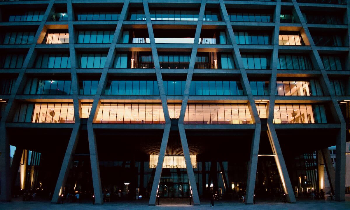 Dusk Over Osaka University. The Minoo campus of Osaka University has a rather impressive modern brutalist facade, which really comes into its own when the light of the day is fading.