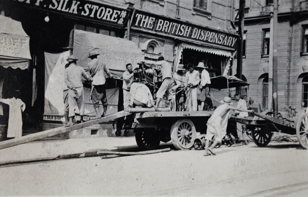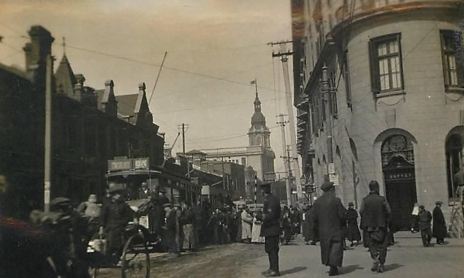 In the distance, we see the Japanese consulate, which was the center building of a set of three consulates on Whangpoa Road: The German one closest to the Astor, then the Japanese consulate followed by the US consulate. We'll visit consulate row in one of the upcoming posts.